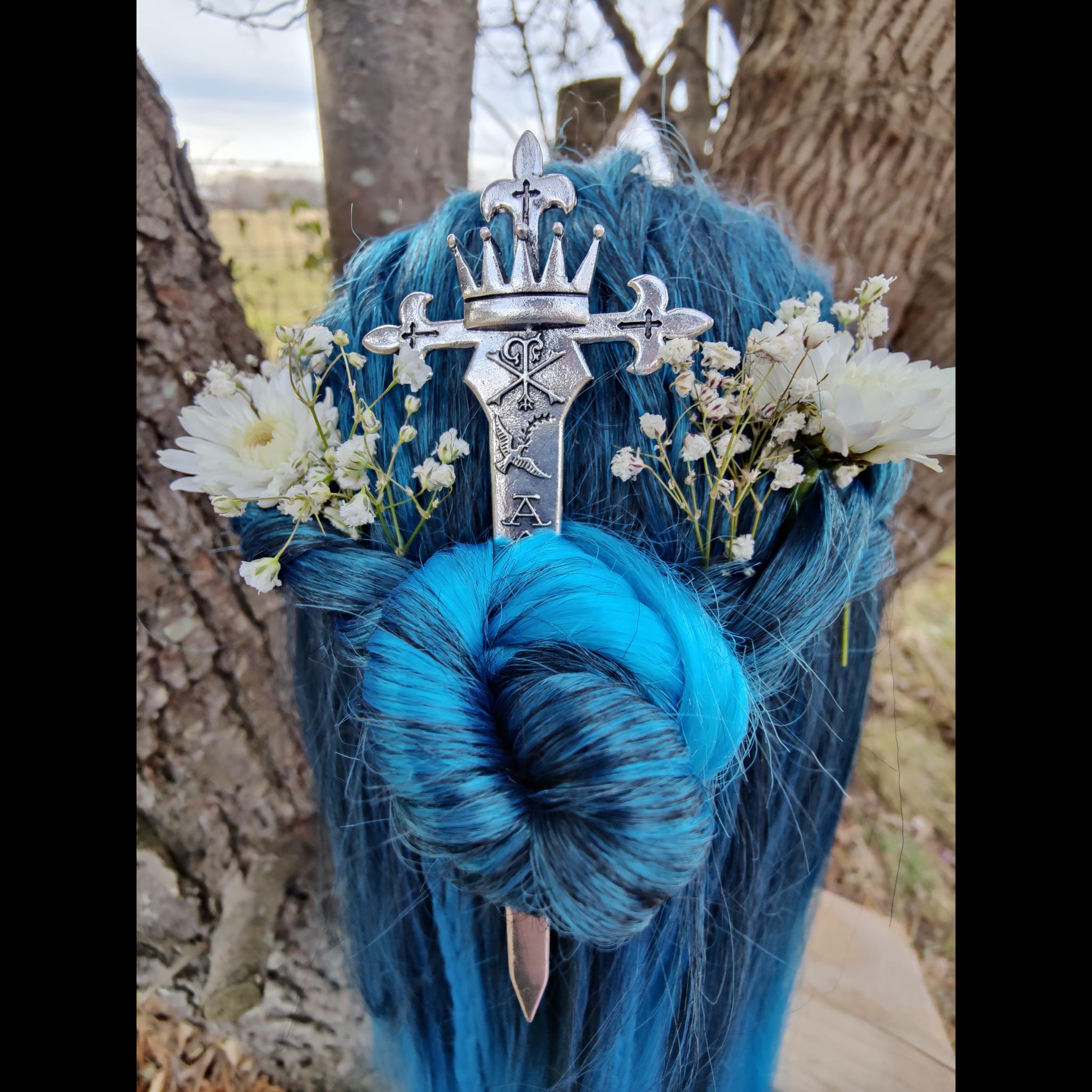Embrace the profound truths of Christianity with the Sword of the Spirit Hair Dagger, a striking piece inspired by the Holy Trinity and the Word of God. Designed to honor the Father, Son, and Holy Spirit, this hair dagger merges artistry and theology, creating a meaningful accessory for those who cherish their faith and its deep symbolism.