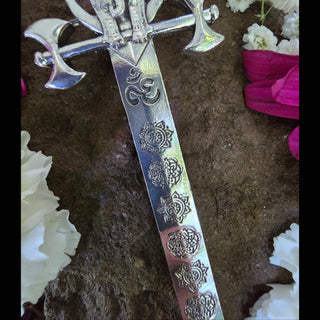 The Ganesh Hair Sword is a tribute to the Hindu deity known for removing obstacles and ushering in new beginnings. Revered as the Lord of Wisdom and Patron of Arts and Sciences, Ganesh is a figure of balance, intellect, and spiritual protection. This piece honors his many forms and teachings through symbolic detail drawn directly from his iconography.