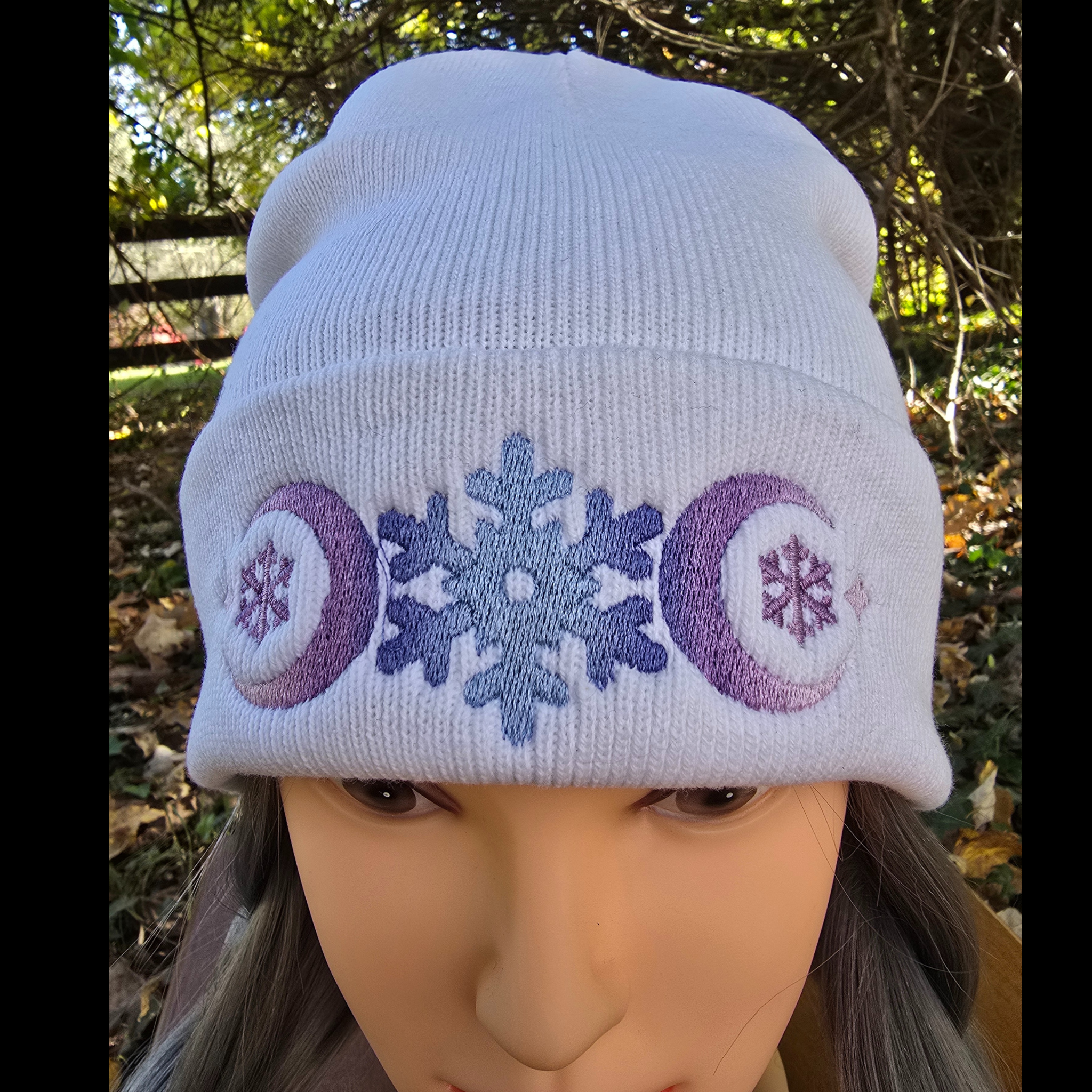 Availbe in Winter Witch White, Sleek Black, or Nightfall Navy, this beanie will add a touch of magic to any of your winter outfits. Perfect for chilly days or Yule gatherings!